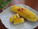 5.もう一度皮に詰め込み、卵黄を塗ってオーブンでチン