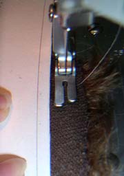 ミシンの押さえの左隣に厚紙を置いて、あてながら縫っていきます。